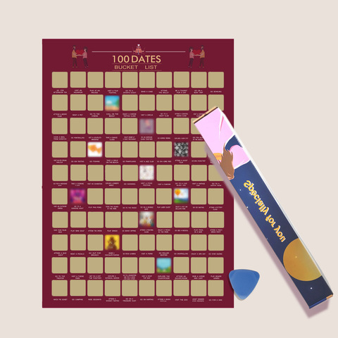 バレンタイン誕生日スクラッチオフポスター-100枚の日付のアイデアカップルのための素晴らしい珍しい商品ギフト段ボール紙
